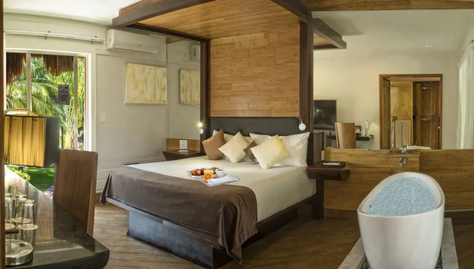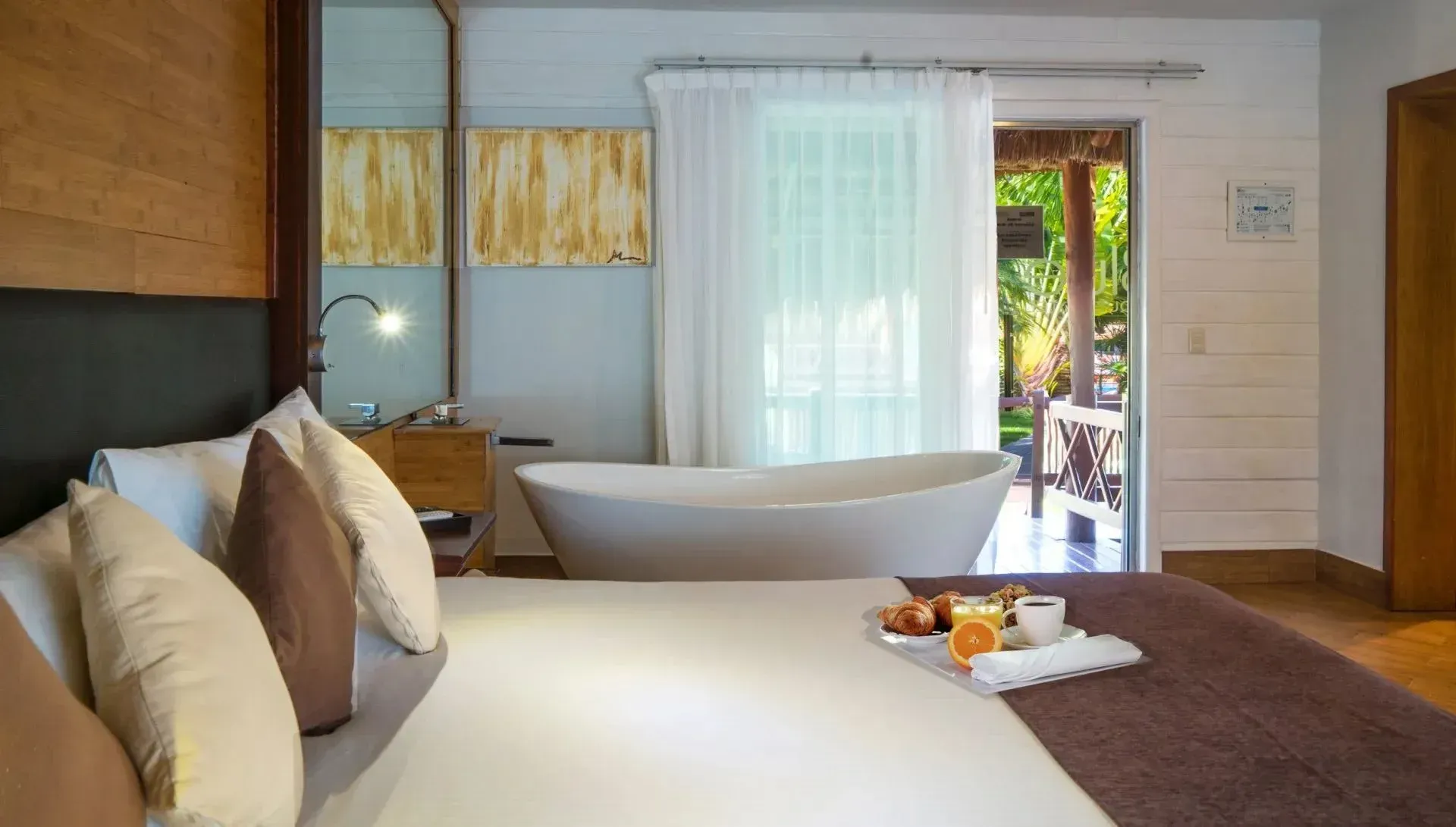 The Master Suite is a combination of stylish and privacy. Enjoy the exclusivity of a King Size Bedroom with a romantic bathroom with bathtub or just relaxing yourself in the terrace. In this Master Suite, you will find a peaceful atmosphere , surrounded with all the amenities you may need. All our rooms counts with Pillow Menu, the highest quality amenities, items of personal hygiene, as well as a minibar widely assorted ($).